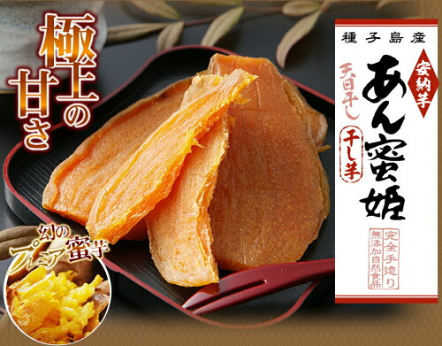 種子島安納地区で最上級のブランド安納芋『プレミア蜜芋』を栽培する名人と、独自の秘法を持つ干し芋作りの達人が、人生をかけてこだわり抜いた職人技が ついに完成させた究極の干し芋、しっとり極甘『あん蜜姫』。