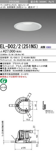 セット構成品:EL-D02/2 (LED照明器具 LEDダウンライト(MCシリーズ))EL-DU251NS AHN (LED照明器具 LEDダウンライト(MCシリーズ)ライトユニット)※商品によっては取付け工事が必要なものもございます。